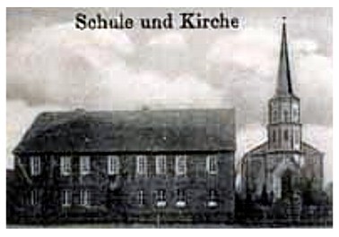 Bild: Die Schule und die Kirche von Kienitz.