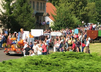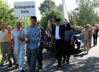"Kienitzer Strickbauer" führt den Festumzug an. |
