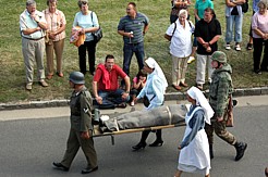 eines militärhistorischen Vereins, die mit den teils originalen Uniformen und